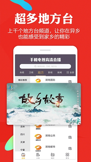 湖南影视、上海教育、北京新闻、四川影视文艺、湖北影视等众多地方台,无论在何地,都可随时看到家乡的电视台。
