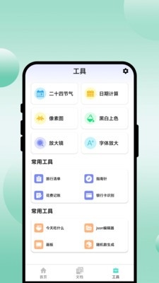 4、在工具页面中有二十四节气、日期计算、像素图、黑白上色、放大镜、字体放大,还有各种常用工具。