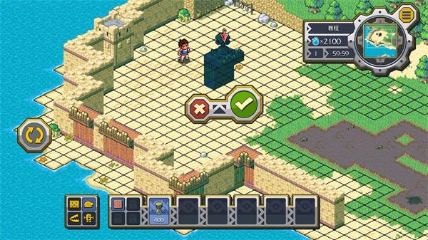 4、当剧情推进一定程度后会进入战斗模式,战斗时点击左下方可以切换放置的建筑,点击对应建筑后再次点击绿色对勾按钮可以放置建筑。