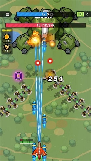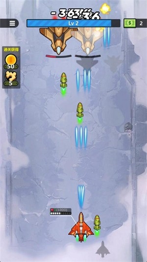 3、开始战斗后飞机会自动发射不同的子弹进行攻击,玩家要做的就是滑动屏幕控制飞机移动。