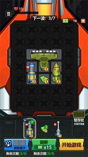 2、进入关卡后需要先将武器放入飞机里,放完后点击开始游戏进行战斗,相同的武器可以合并来提升等级。