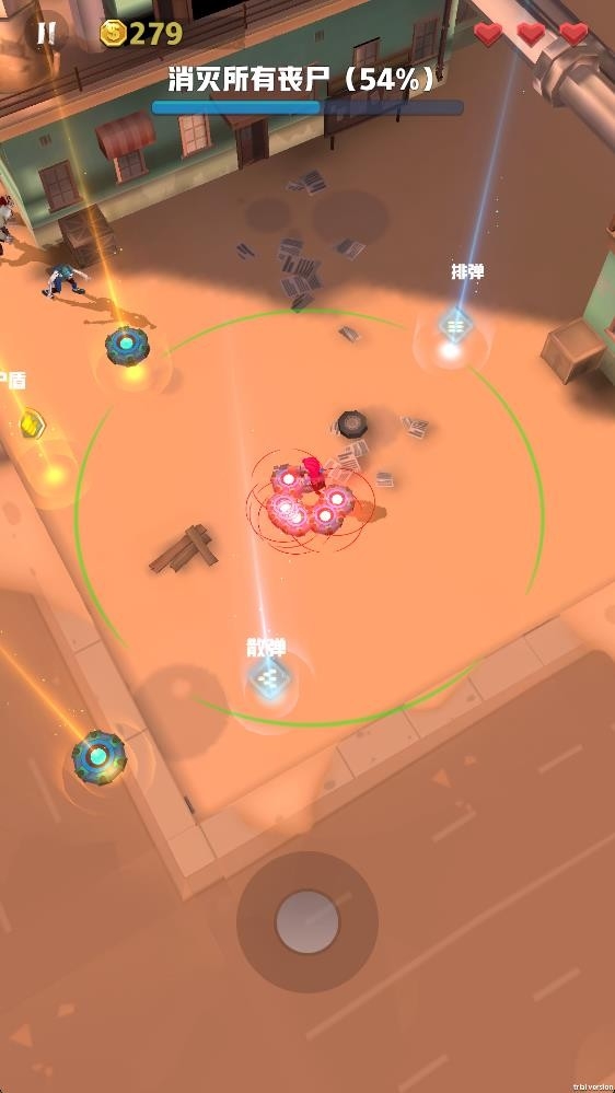4、消灭僵尸可以掉落不同的道具物品,这些道具可以帮助你应对成群的僵尸。