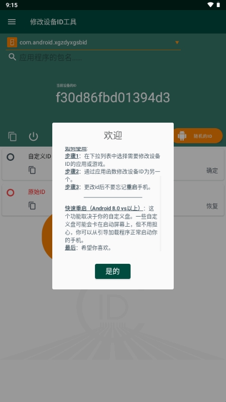 4、支持随机设置:选择随机或手动设置设备的androidid值,保证设备的匿名性和隐私性。