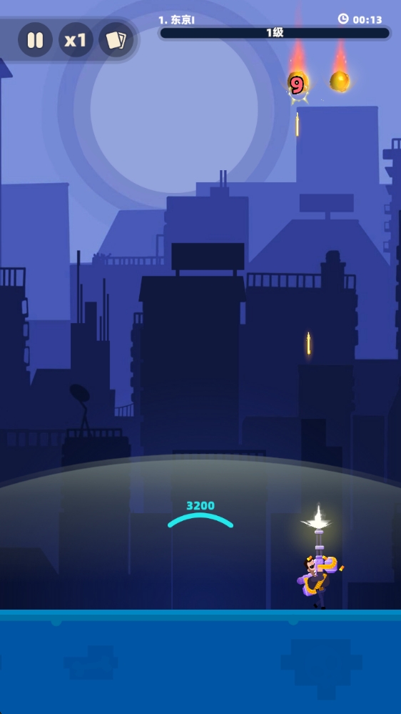 1、游戏中拖动角色即可移动并瞄准射击。