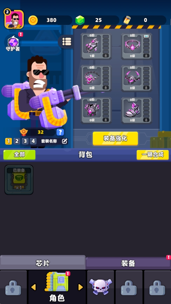 6、回到主界面,可以强化自己的装备,并装备芯片来提升战斗力。