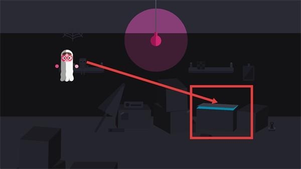 2、点亮后发现藏身处,快操控小幽灵躲进带蓝边的箱子里,这样能避开危险,悄悄推进剧情超刺激。