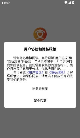 1、首先打开应用点击“同意并接受”按钮来进入app中。