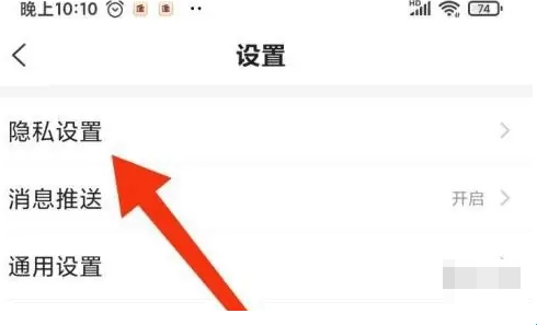 2、展开快捷功能面板后,选择二级菜单中的【隐私设置】入口。