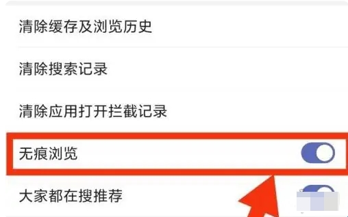 3、切换至隐私管理界面,激活【无痕浏览】功能开关即完成配置。