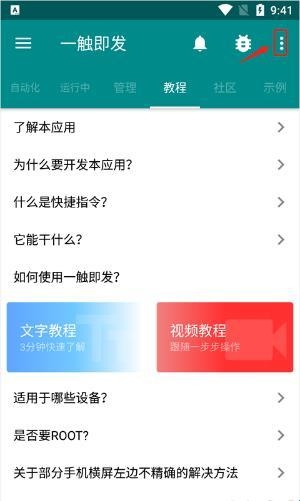 1、在本站下载一触即发脚本应用,打开后,在主界面点击右上方的“...”;