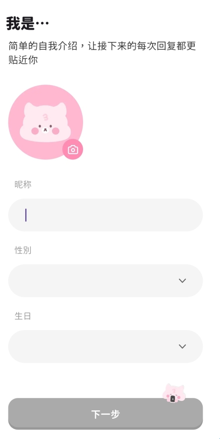 5、然后就是填写你的名字、性别和生日,再选择你想认识哪个圈子的角色了,不过这些都可以后期到软件内更换修改的。