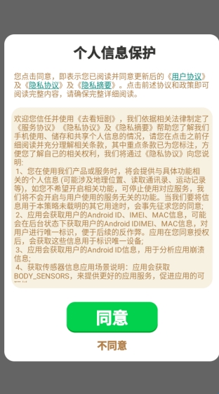 2、在个人信息保护页面,点击同意用户协议与隐私协议。