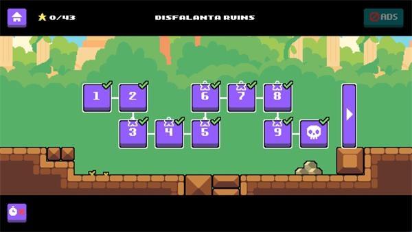 3、进入关卡后左边控制角色前进,右边控制角色的跳跃,连续点击可以二段跳。