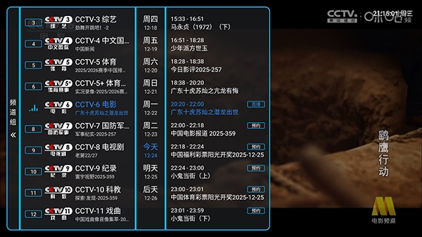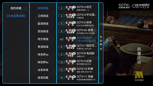 2、点击左侧屏幕唤起电视频道列表。