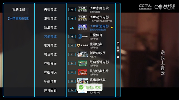 2、在我的收藏里面可以看到收藏的电视频道。