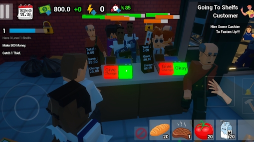 2、您要不断解锁各种物品,对店面、员工进行提升,这样超市才能得到更好的发展,多了个循序渐进、动手操作、完成系列升级、建立最强超市帝国的玩法。
