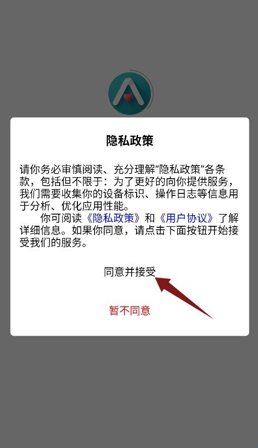 1、首次启动应用需点击确认协议弹窗,同意后方可进入主界面。