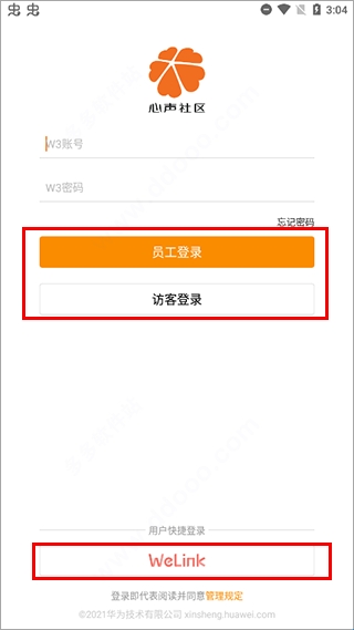2、许多人好奇华为心声社区怎么进去,首先这是需要华为员工使用W3账号密码登录的,不如你也可以访客登录,不过权限没有全部开放;