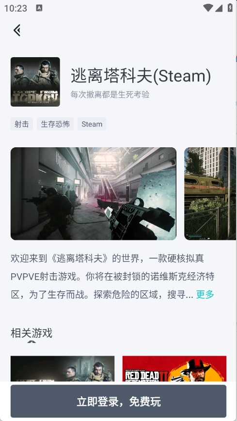 3、点开想玩的游戏进入详情页,点击“立即登录,免费玩”即可。