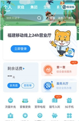 1、我的移动:历史账单、积分余额、套餐余量、个人信息等查询,准确清晰。