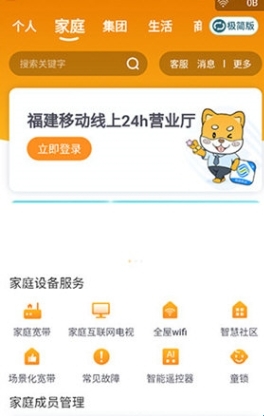 家庭专区爱家托管:轻松代查代办家庭成员业务、代缴话费,还可玩任务分配话费、流量给家庭成员。