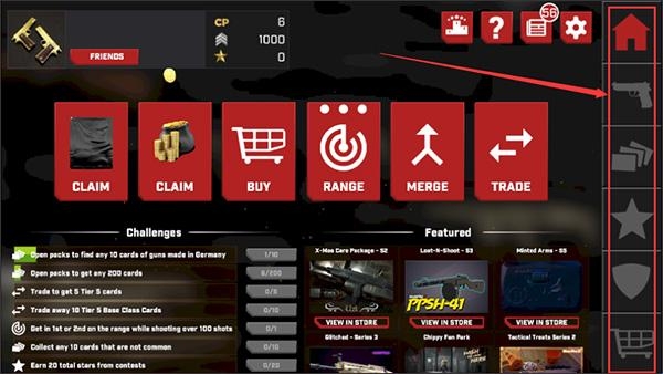 1、进入真实枪械2游戏后,在首页点击右方的枪械按钮进入枪械库;