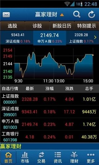 4、赢家理财高端版提供包括沪深指数、全球指数、申万指数、沪深、港股、基金、债券、外汇、期货等在内的各市场行情品种,股掌之上,即可遍览全球市场。