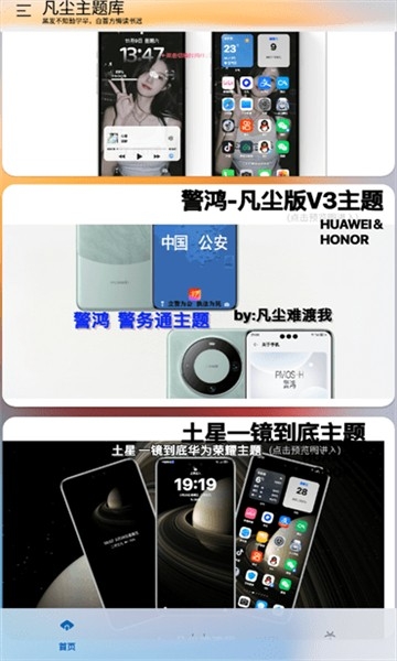 凡尘主题库3.0是一款为安卓手机打造的壁纸主题美化工具。软件内置超多好看的主题,如仿造ios主题、鸿蒙主题、澎湃主题等等,用户选择自己心仪的主题即可一键套用,方便快捷。还内置超多小工具,有音乐、ai、qq查找等等,满足用户的多种使用需求!