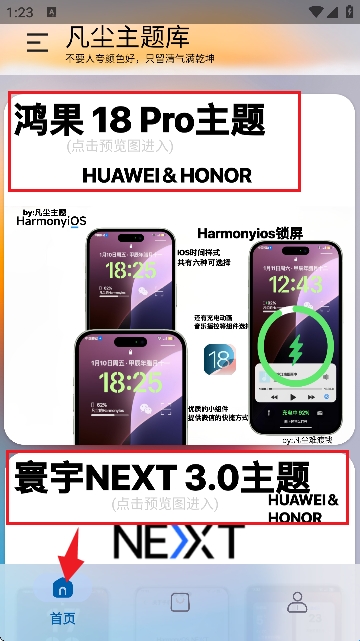 3、然后进入到软件首页中,如图所示。这里提供了鸿果18 Pro主题、寰宇NEXT 3.0主题等主题
