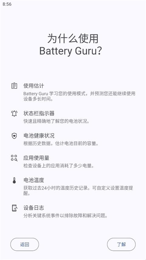 -显示有关电池的信息:电压,温度,容量和电池运行状况,电池充电器历史记录…,还提供有关应用统计信息,唤醒锁定以及设备的深度睡眠/唤醒时间的信息。