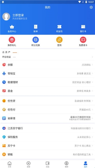 5、点击我的,可以登录注册app,查看账单,余额,绑定银行卡等