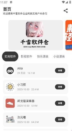 1、千雪软件仓软件页面简洁,可以免费下载各种你所需要的应用软件。
