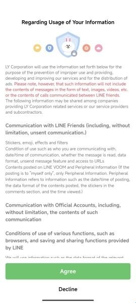 2、在验证账号界面中,需要同意line的相关服务以及隐私政策,输入在地区使用的手机号。