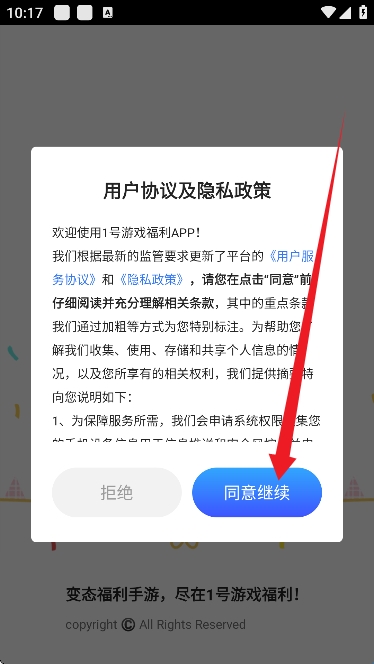 2、进入到软件中,如图所示。首先请同意用户协议和隐私政策。