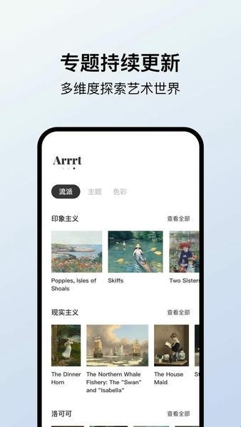 集结世界名画的arrrt名画艺术鉴赏,为您开启随时随地的艺术之旅。在这里,您不仅能欣赏到名画的美,更能深入了解它们背后的历史与文化,感受艺术的独特魅力。现在就加入,让每一份感动都成为生活的一部分。点击下载,让arrrt名画艺术鉴赏陪伴您一起,用艺术装点生活,用名画点亮心灵。