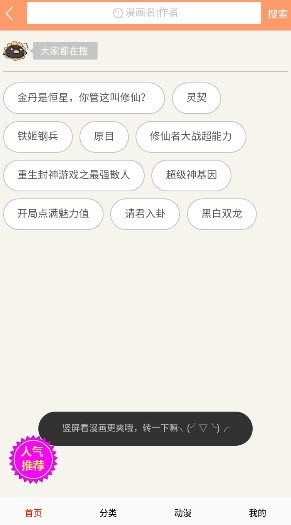 4.还能点击下方的【分类】和【动漫】,会有弹窗提示;