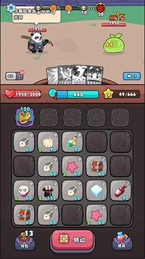 3、选好宝物后点击转动按钮会出现不同的棋子,系统会根据棋子的分数总和来造成对应的伤害。