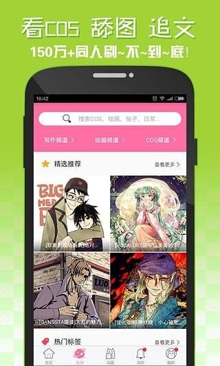 3、个性分类、智能搜索,分类涵盖题材、精选和作者三种方式,个性化推荐满足漫迷口味