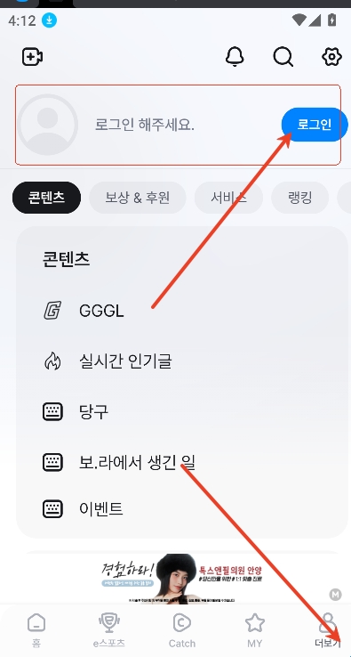 下载安装afreecatv官方最新版,进入我的,点击注册登录