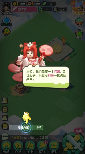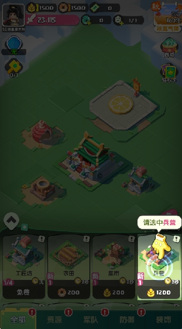 2、先修建兵营吧,点击兵营选中兵营即可快速修建。