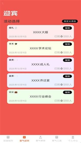 2、点击下方工具栏喜气迎客,可以进行活动选择也可以自定义添加。