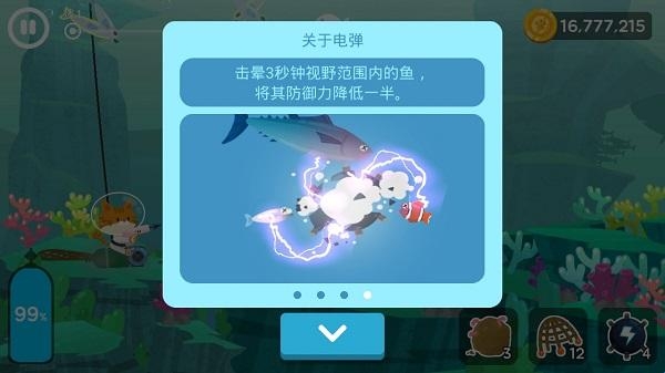 4、击昏3秒钟视野范围内的鱼,将其防御力降低一半。