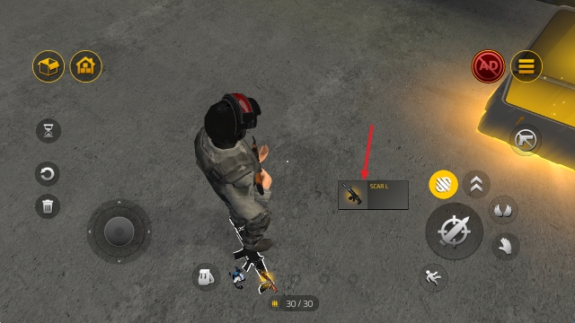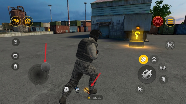 2、左侧的摇杆可以控制移动,点击下侧武器可以切换。