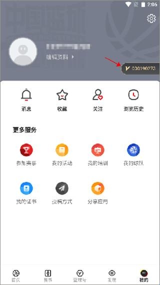 1、打开软件登录账号之后,切换“我的”功能模块,点击加入中国篮协会员。