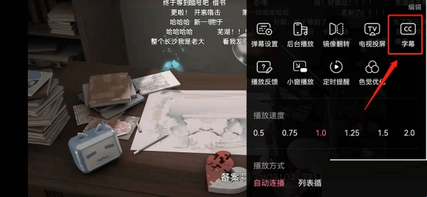 2、然后在右侧出现的功能中点击字幕进入。