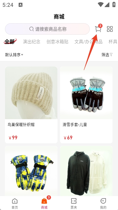 1、打开鸟巢app,点击【商城】,再点击右上角购物车图标。