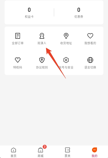 1、打开鸟巢app,点击右下角【我的】-【观演人】。