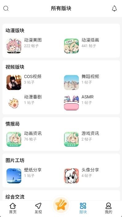 4、在板块页面能迅速定位并加入圈子,分享自己的热爱与创作。