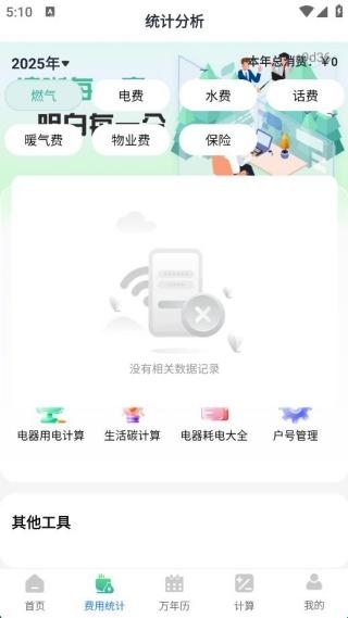 4、进入费用统计页面,提供费用分析功能,可查看用电趋势图,帮助您合理规划用电和预算。