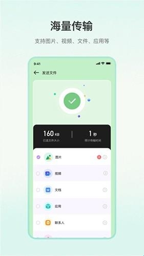 4、多种类型:联系人、视频、图片、日程极速传输。